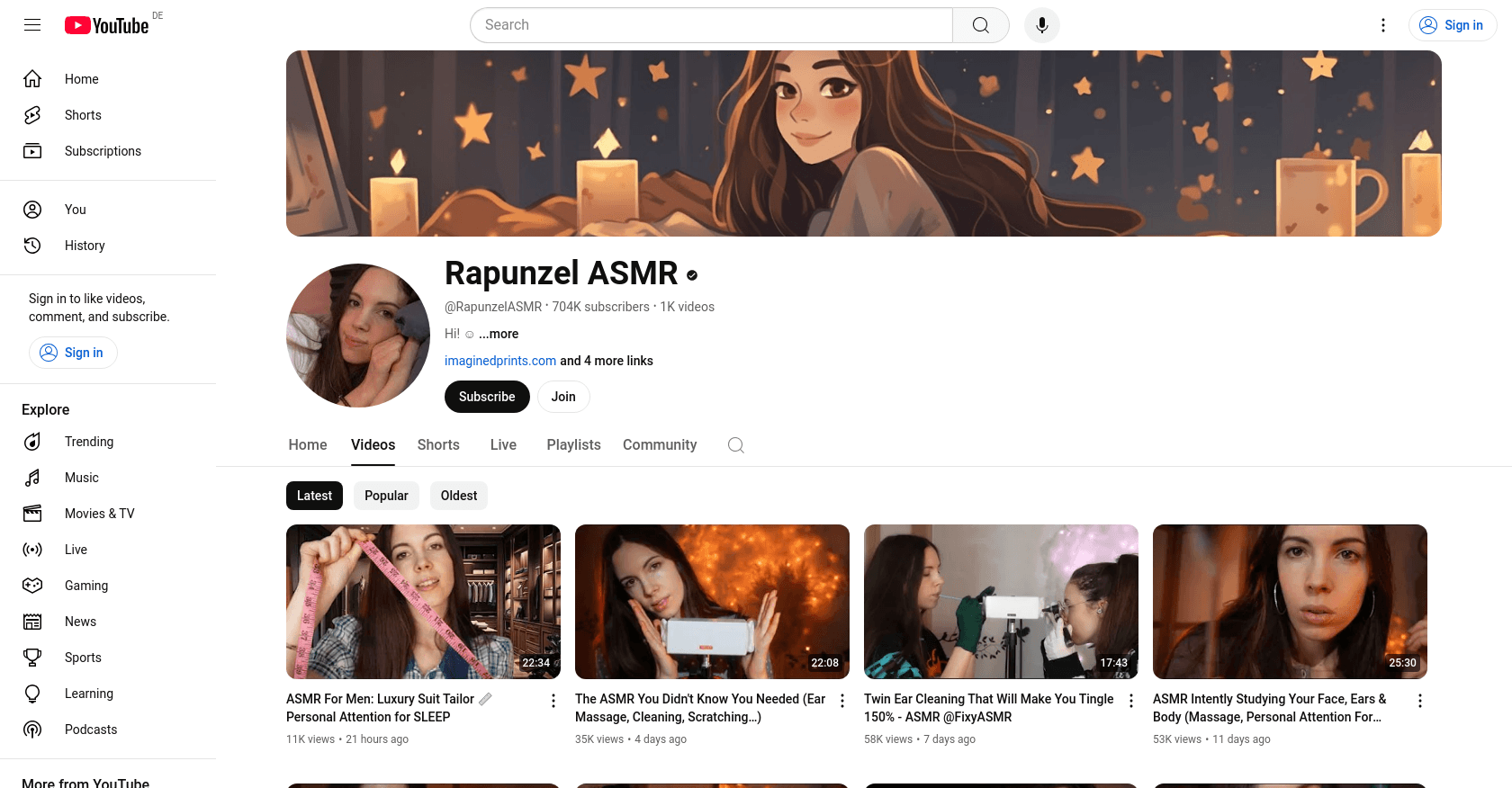 Rapunzel ASMR, a well-known YouTube creator specializing in ASMR content, has a significant following and produces videos designed to help viewers relax and sleep.