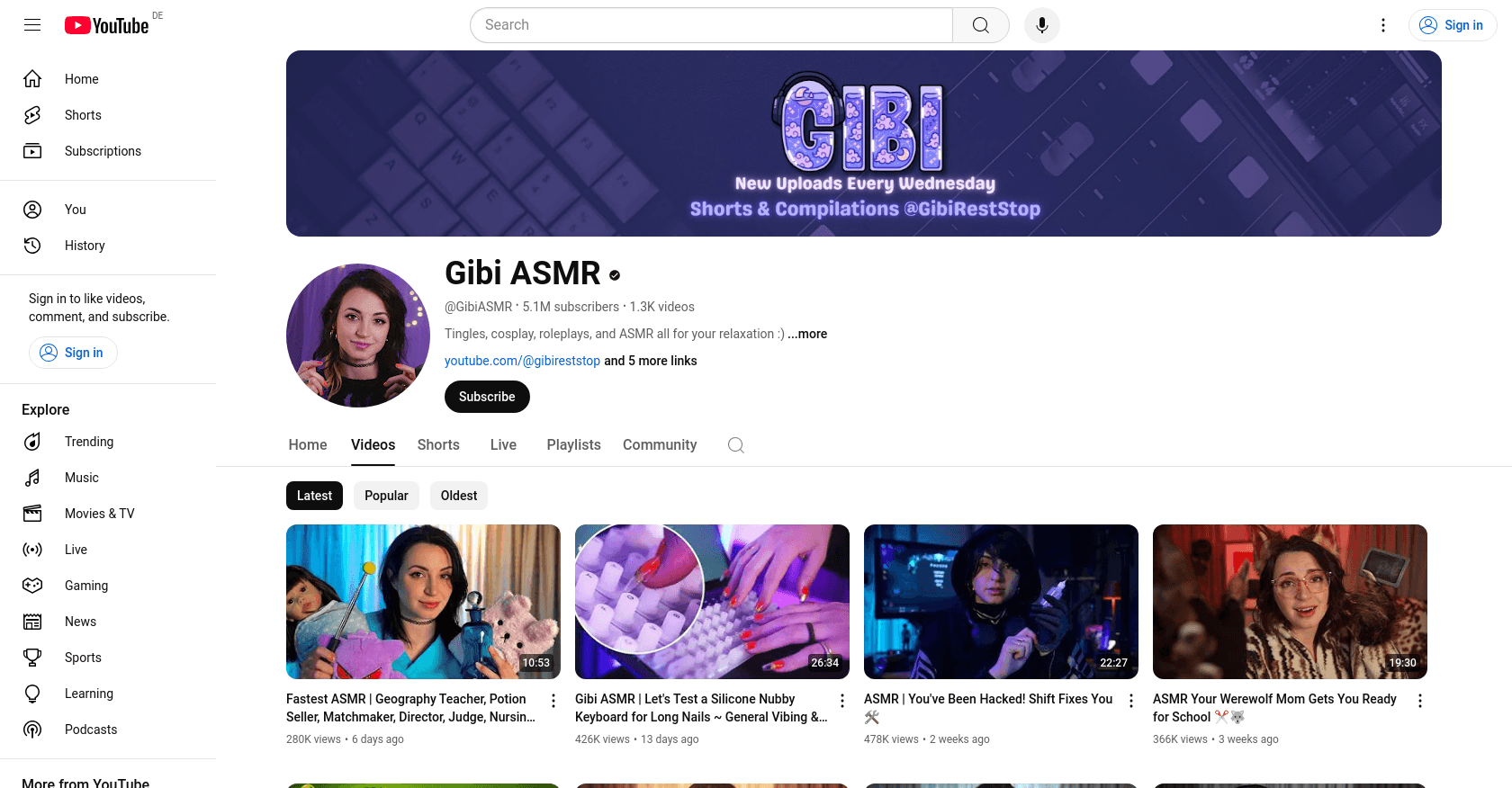 Gibi ASMR's YouTube channel boasts impressive statistics that highlight her popularity and engagement within the ASMR community.