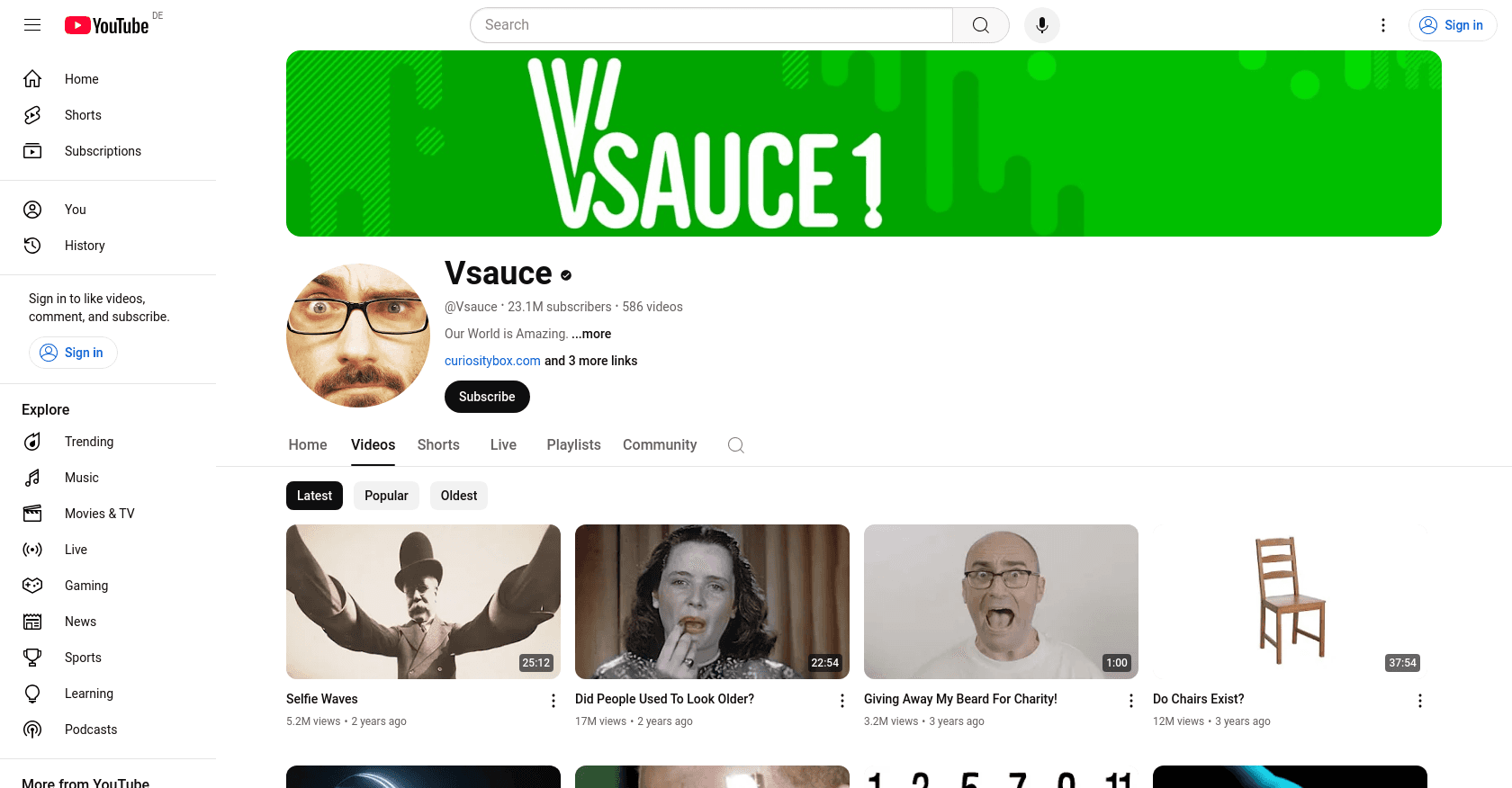 Veritasium, hosted by Derek Muller, is a popular YouTube channel that delves into science, education, and other intriguing topics.