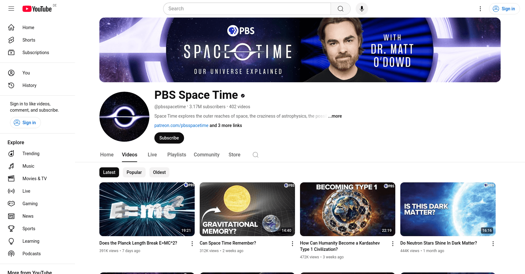 PBS Space Time, hosted by astrophysicist Matthew O'Dowd, joined YouTube on February 09, 2015. The channel delves into the mysteries of the universe, covering topics like astrophysics, science fiction, and the search for alien life. For more information, visit PBS Space Time YouTube Channel.