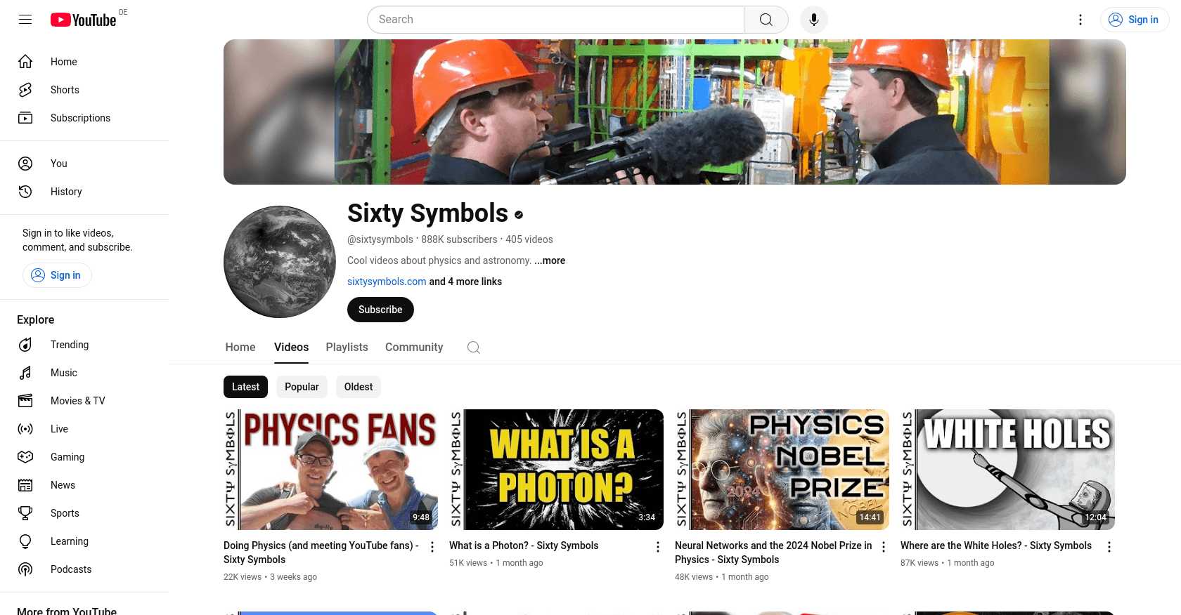 Sixty Symbols, created by Brady Haran, is a YouTube channel dedicated to producing engaging videos about physics and astronomy. The channel joined YouTube on February 13, 2009, and has since gained a substantial following for its educational content. For more information, visit Sixty Symbols YouTube Channel.