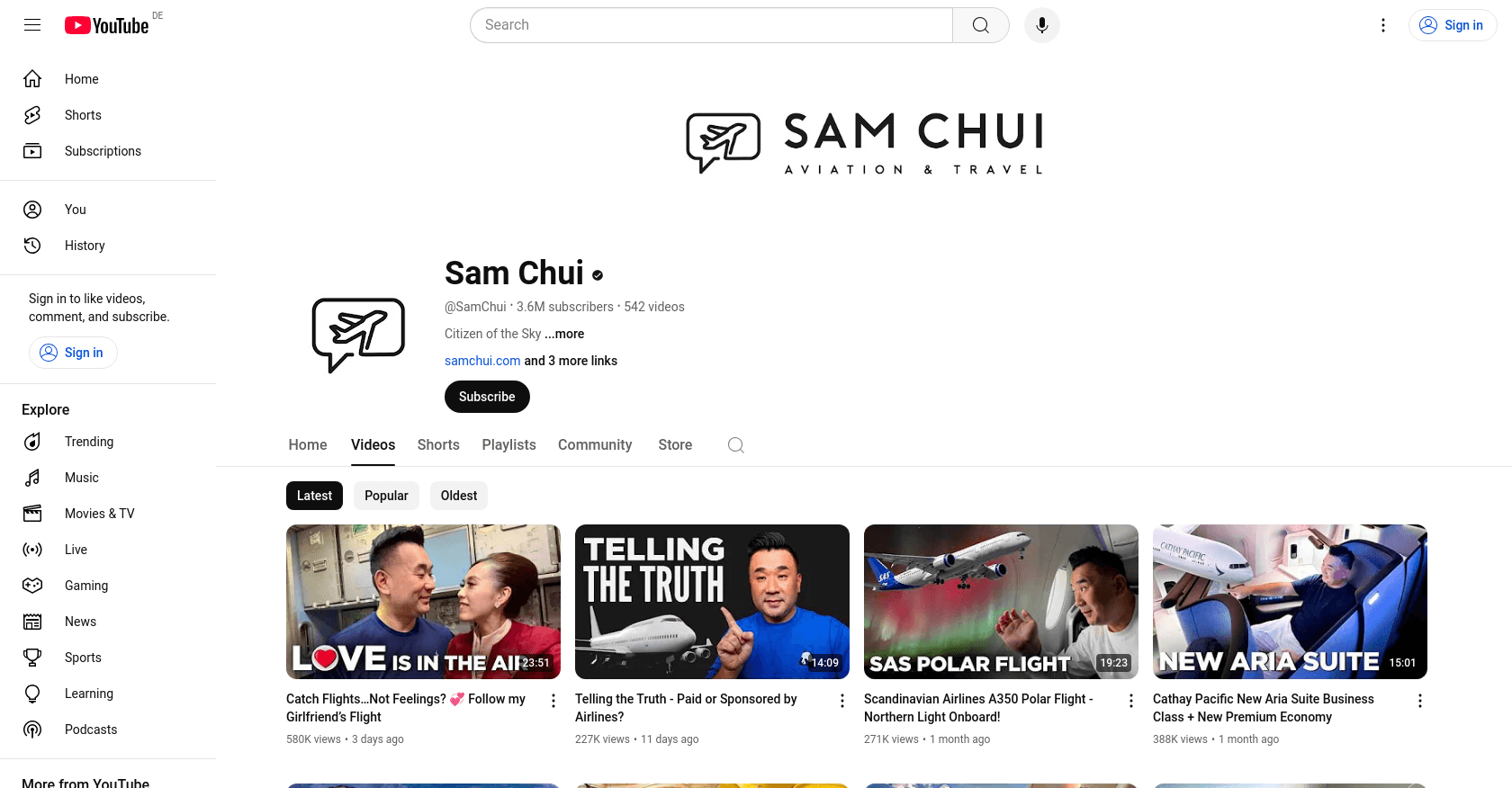 Sam Chui, a renowned aviation enthusiast and content creator, joined YouTube on November 4, 2007. Known for his detailed reviews and experiences related to aviation, Sam Chui has amassed 3.61 million subscribers on his YouTube channel. His channel, often referred to as "The Aviation Experience Channel," features a wide range of content including flight reviews, aviation adventures, and behind-the-scenes looks at airlines and airports.
