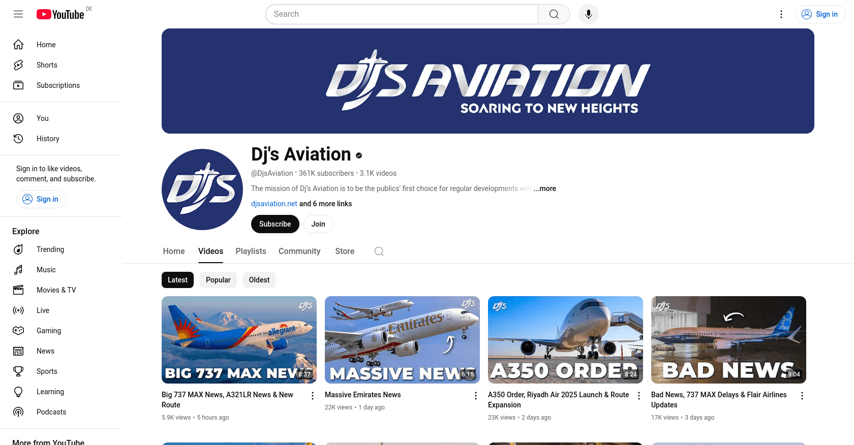DJ's Aviation, a YouTube channel dedicated to aviation news and updates, is based in Australia.