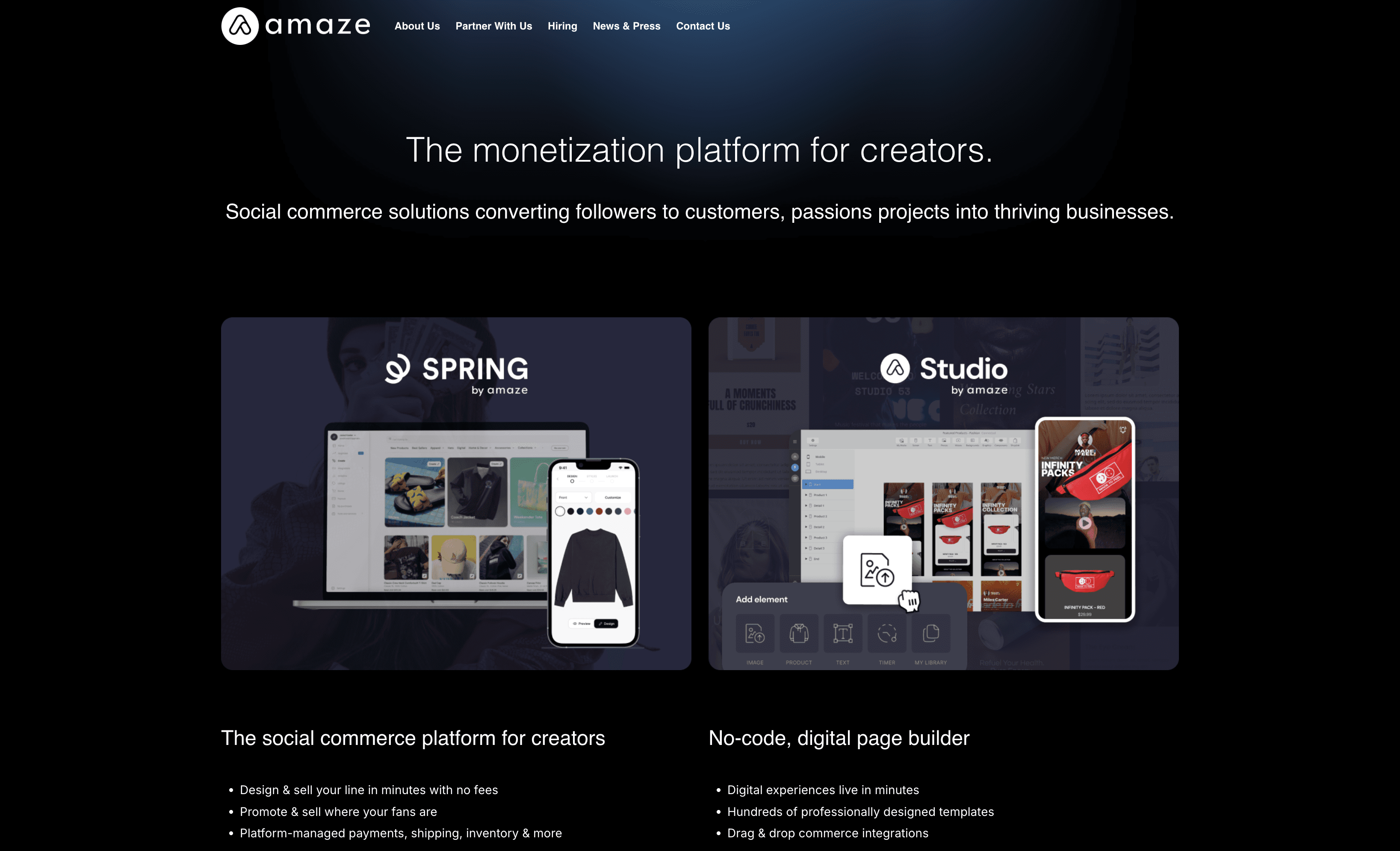 Amaze is a platform that provides a no-code digital page builder for online content creators. It offers hundreds of professionally designed templates and drag-and-drop commerce integrations to create digital experiences quickly.