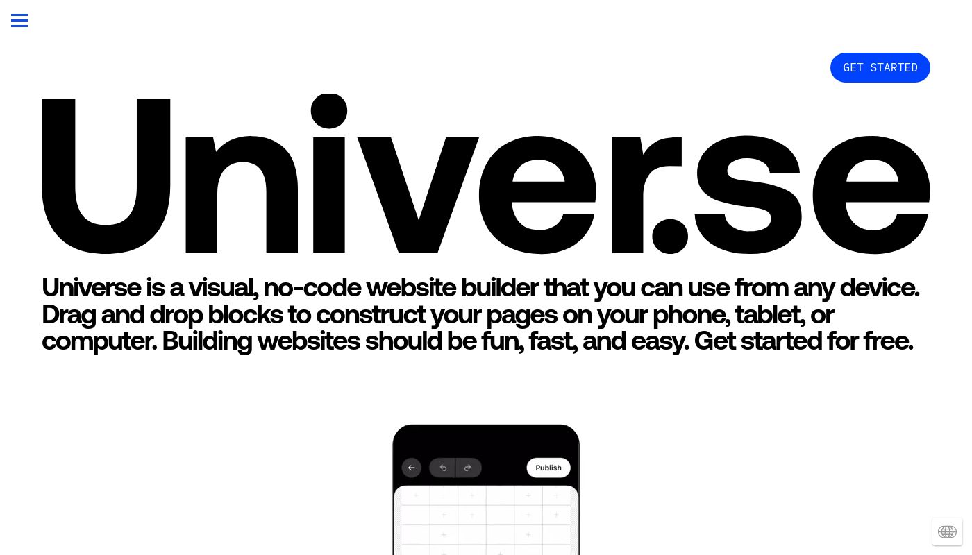 Universe has received a rating of 4.3 out of 5 from 2 reviews on Product Hunt. Generally, users appreciate its ease of use and the ability to create websites quickly from mobile devices, though some have noted issues like frequent breakdowns and UI bugs.