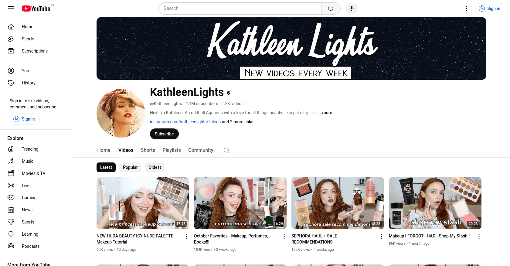 Kathleen Lights, whose real name is Kathleen Fuentes, is a renowned beauty YouTuber who joined the platform on January 26, 2013. She has amassed a significant following by sharing makeup tutorials, product reviews, and fun challenges with her audience. For more about her content, visit Kathleen Lights' YouTube Channel.