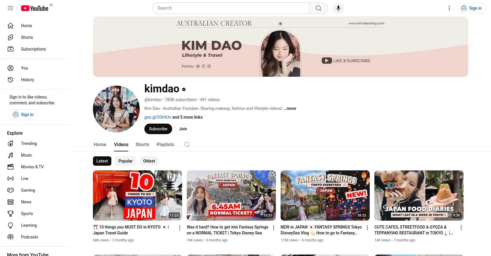 The audience for Kim Dao primarily consists of young adults and teenagers, predominantly female, who are passionate about makeup, fashion, and lifestyle content. For instance, her video "100 Things to do in TOKYO, JAPAN" with 6.2M views highlights the strong interest in travel guides among her viewers, while her tutorials on Japanese and Korean beauty products attract those keen on Asian beauty trends.