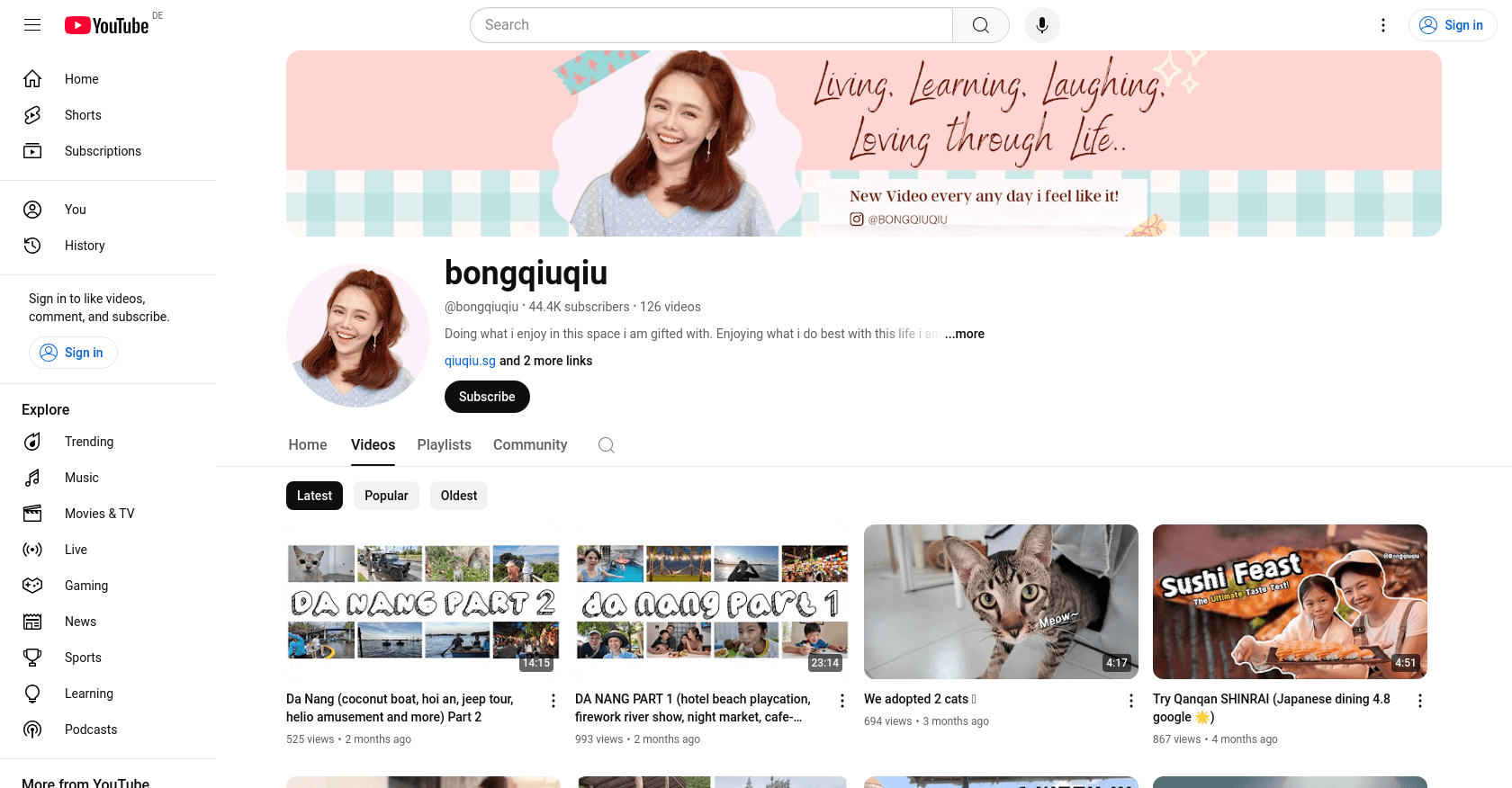 QiuQiu, whose real name is Qiunting, is a Singaporean blogger and YouTube creator known for her engaging lifestyle content. She joined YouTube on January 15, 2011, and has since amassed a following of 44.3K subscribers. For more about her content, visit QiuQiu's YouTube Channel.