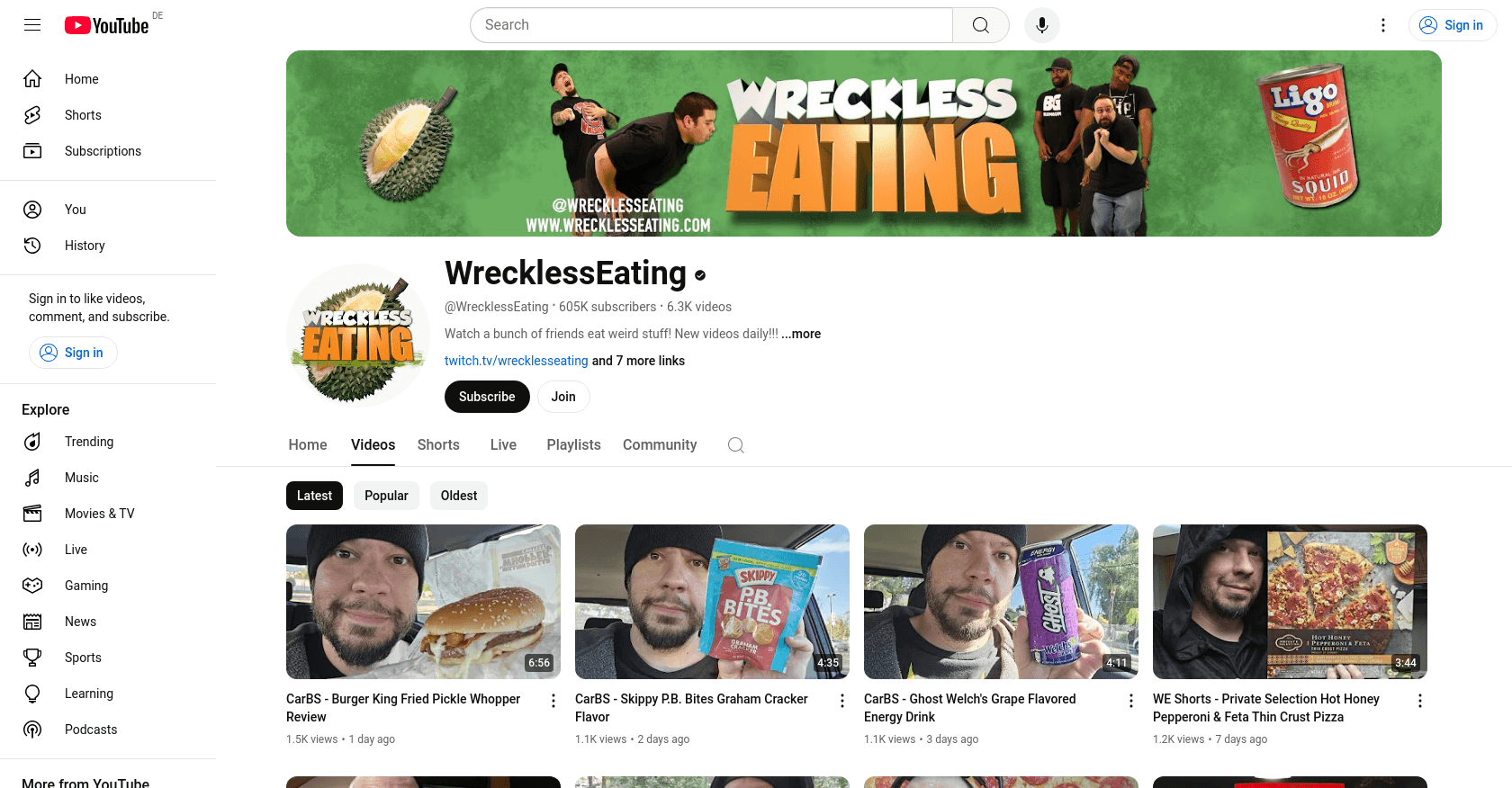 WrecklessEating is a YouTube channel known for its unique food challenges and unusual eating experiences.