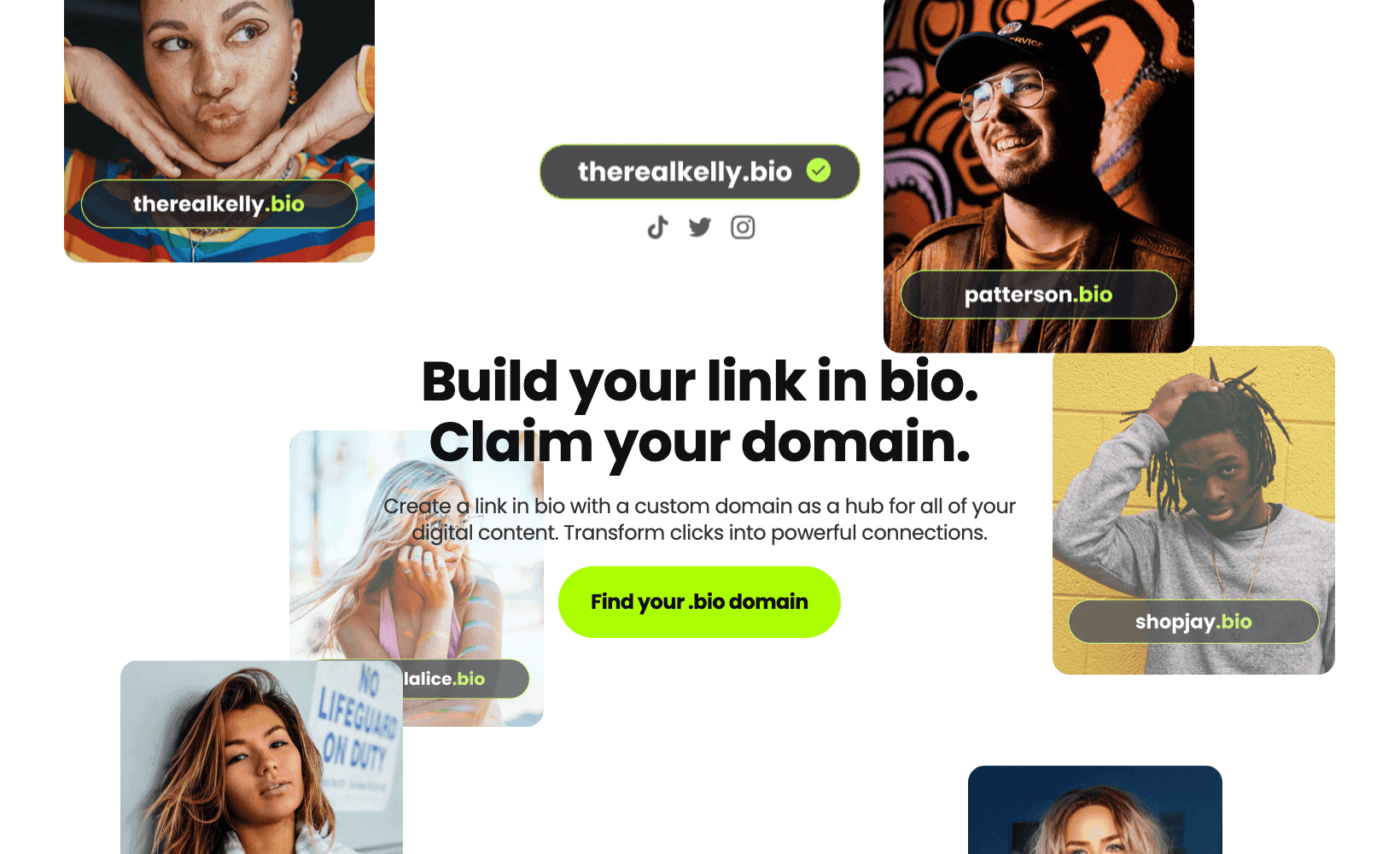 Claim your custom domain. Choose the .bio domain that best aligns with your brand & handles across platforms.