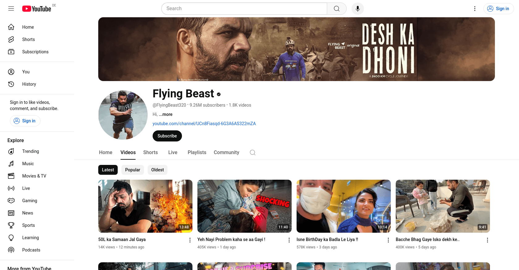 Flying Beast, whose real name is Gaurav Taneja, is a prominent Indian YouTuber known for his engaging lifestyle content. He joined YouTube on December 01, 2017, and has since amassed a substantial following with 9.26 million subscribers. You can explore more of his content on his YouTube channel.