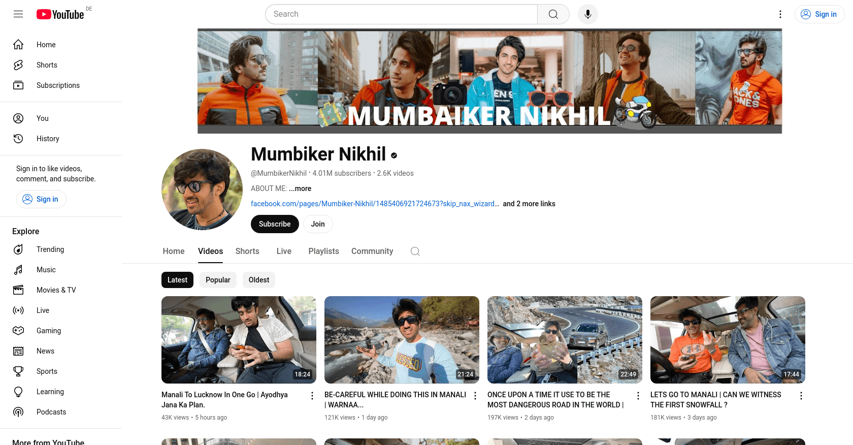 Mumbiker Nikhil, whose real name is Nikhil Sharma, is a well-known Indian YouTuber who joined the platform on July 03, 2013. He has garnered a substantial following with 4.01 million subscribers and over 1.67 billion video views. You can explore more of his content on his YouTube channel.