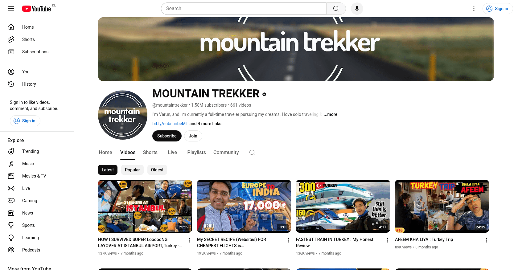 Mountain Trekker, whose real name is Varun Vagish, is a renowned Indian YouTuber known for his travel series in Hindi. He joined YouTube on August 21, 2007, and has since captivated audiences with his solo travel adventures and budget travel tips. You can explore more of his content on his YouTube channel.