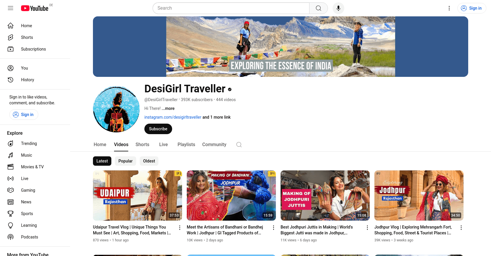 The audience of DesiGirl Traveller primarily consists of young adults and middle-aged individuals who are passionate about travel and cultural experiences. For instance, many viewers are intrigued by her detailed travel guides to regions like Tibet and Rajasthan, while others enjoy her explorations of local markets and festivals, such as the Pushkar Mela and Sarojini Nagar Market.