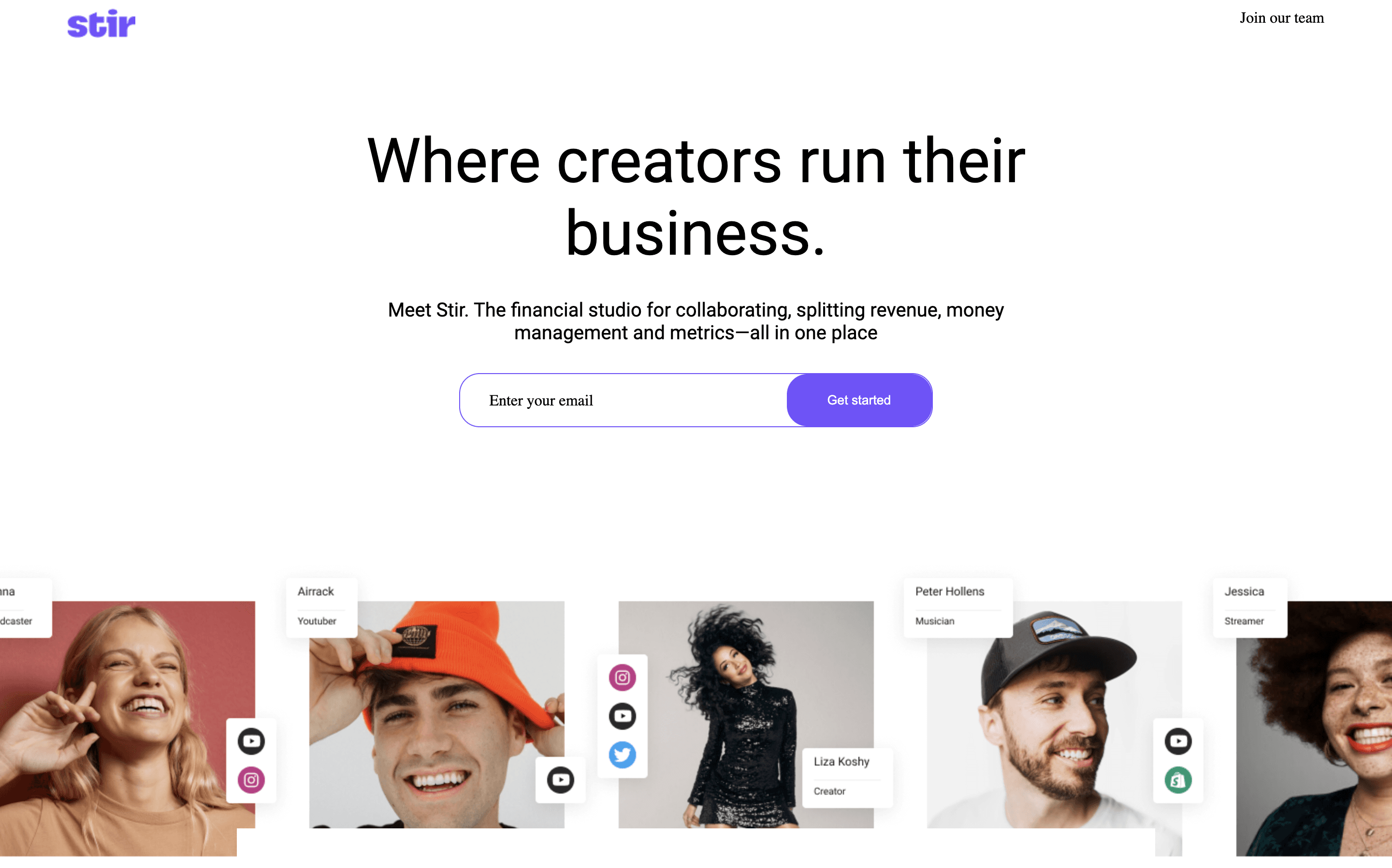 Stir is a financial studio for online creators, offering tools for revenue splitting, money management, and metrics. It simplifies business activities with features like instant payments, collaboration tools, and security measures.