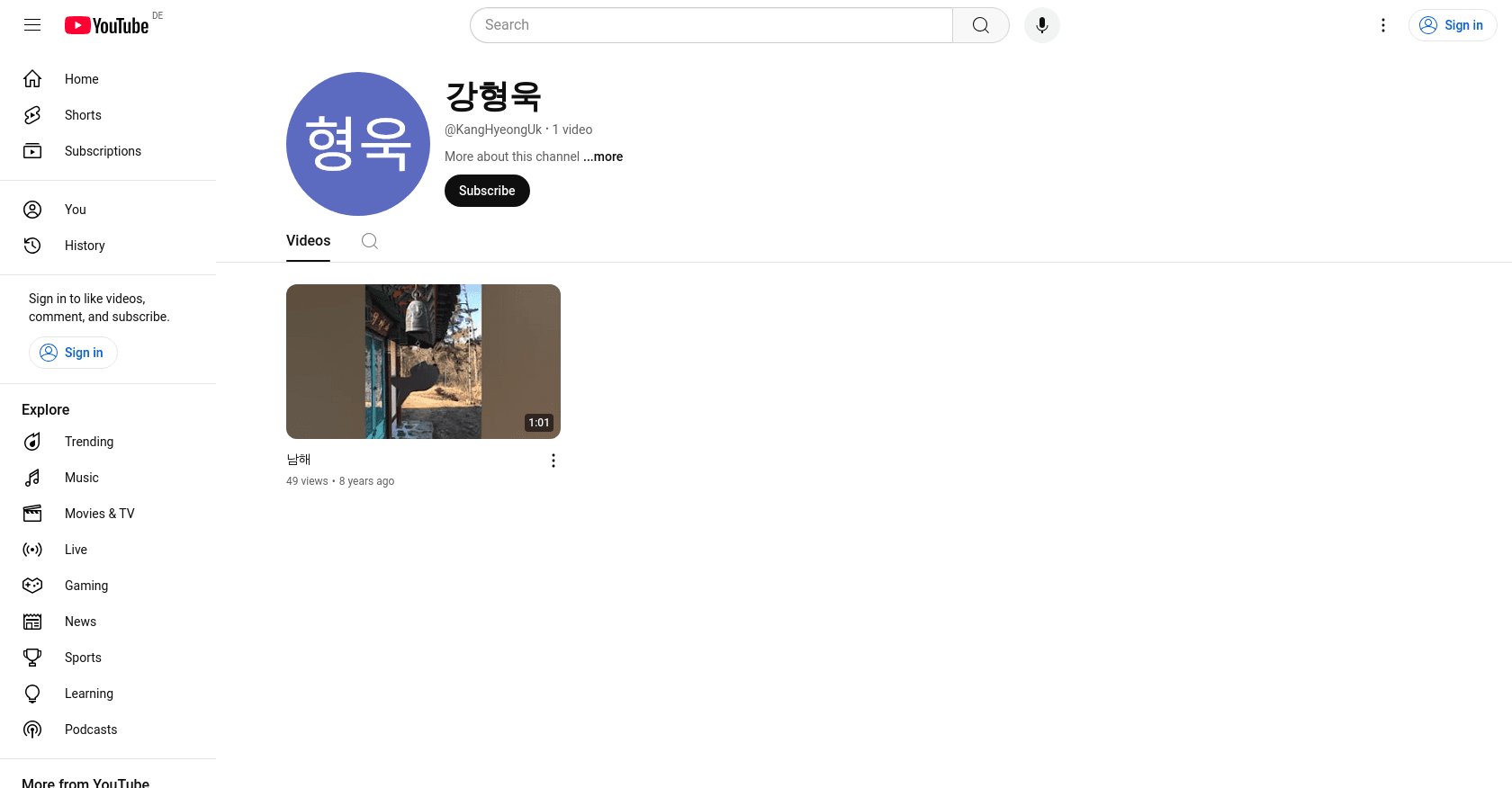 The audience that tends to watch Kang Hyeonguk's videos is primarily Korean-speaking individuals, given that his content is in Korean. For example, his viewers are likely interested in travel-related content, as evidenced by his video titled "남해" (Namhae), which focuses on a specific location in South Korea.