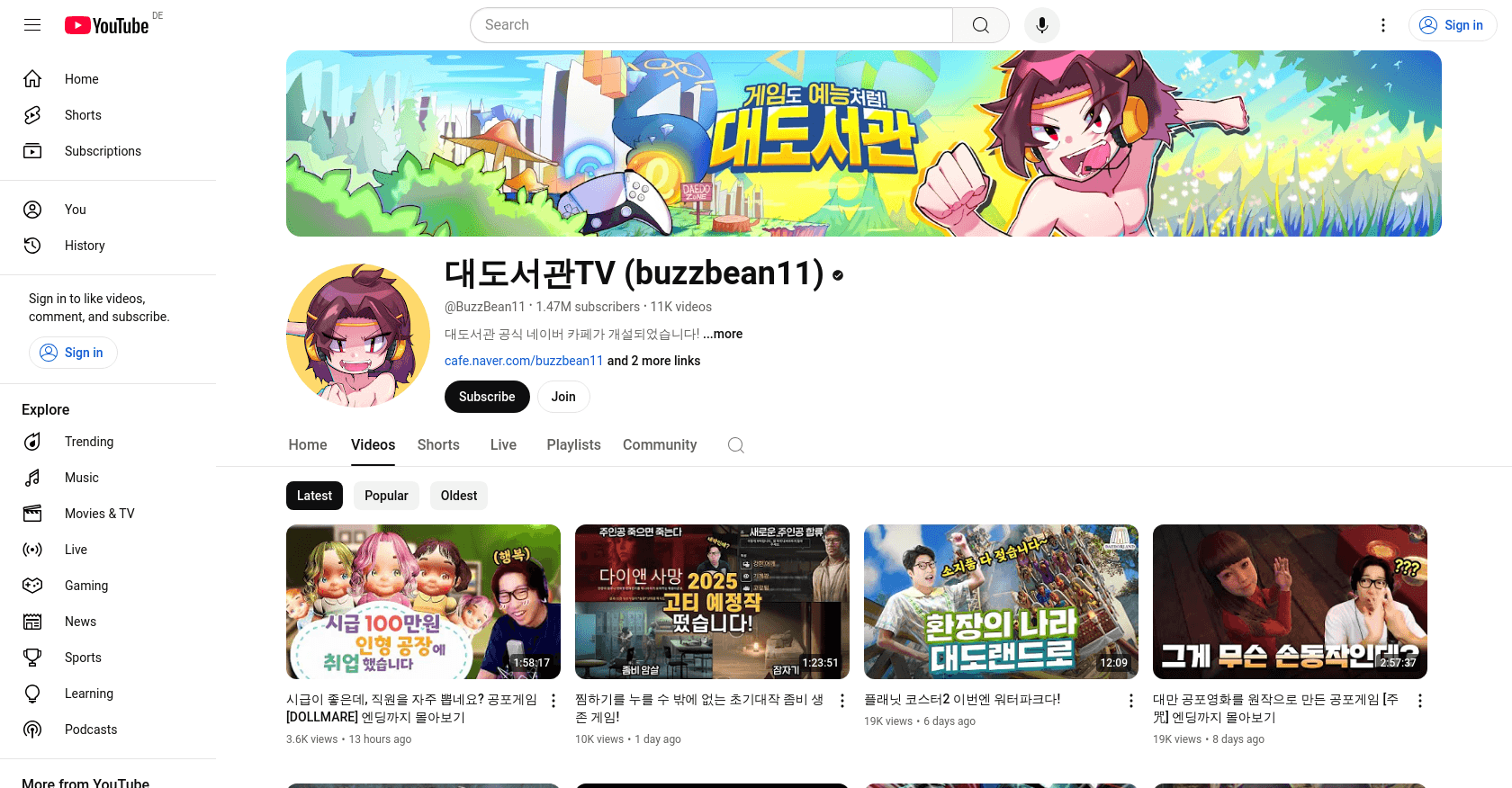 BuzzBean11, also known as 대도서관TV, is based in South Korea, where he continues to create engaging gaming content for his YouTube channel.