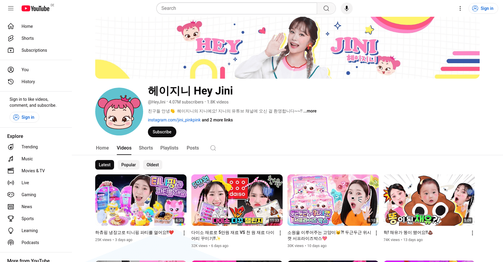Hey Jini is based in South Korea, where she continues to create engaging content for her YouTube channel.