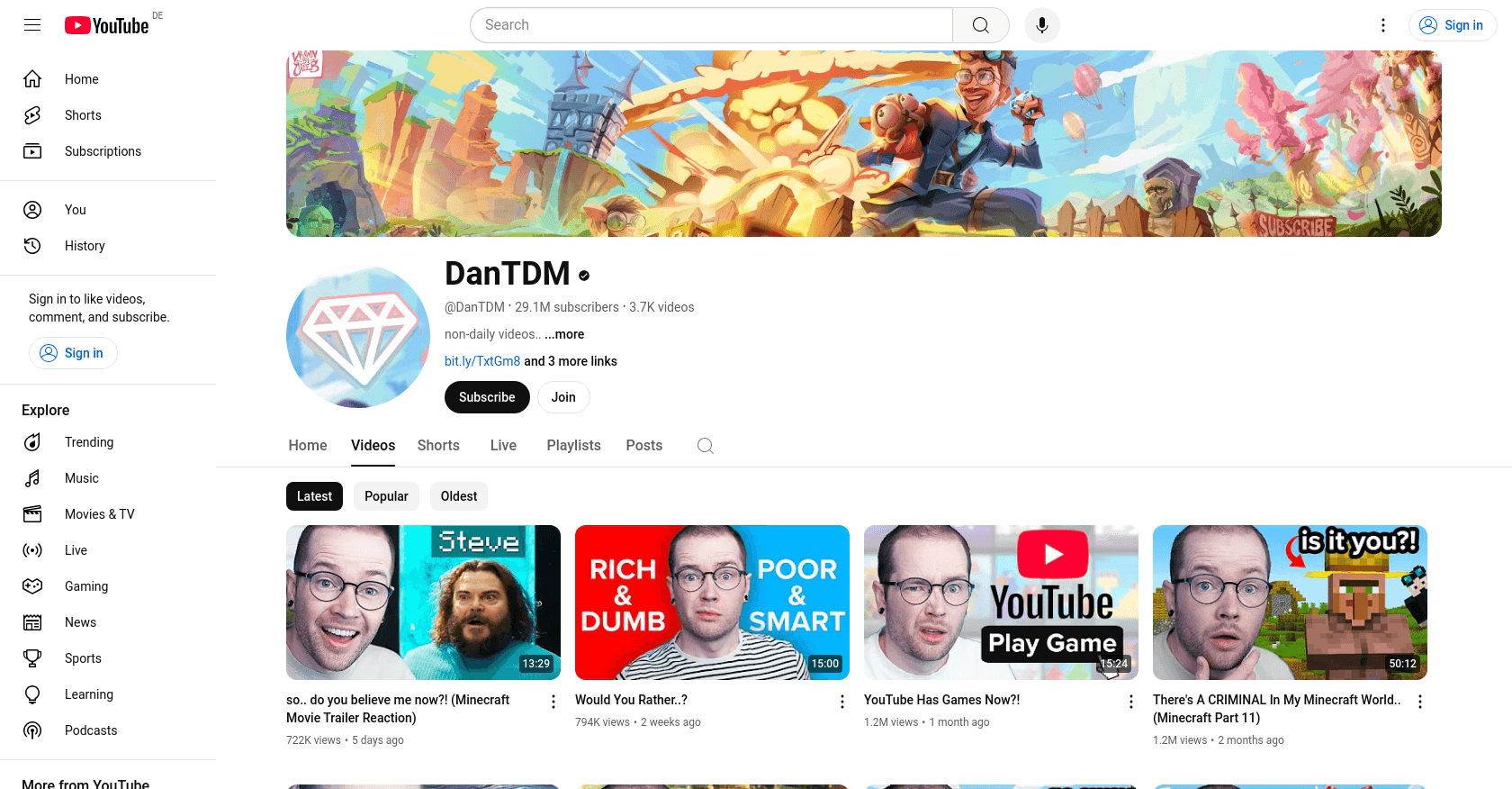 Short-Form Videos and Live Streams: In addition to regular uploads, DanTDM produces short-form videos and live streams, providing a mix of quick entertainment and interactive content for his audience.
