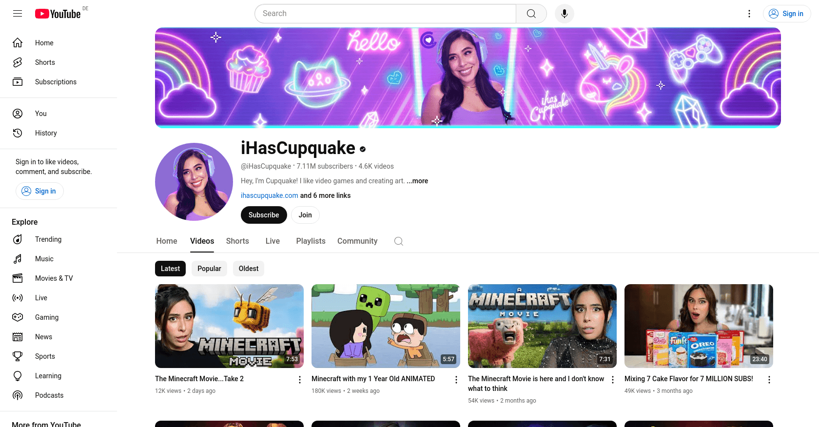 iHasCupquake, known for her diverse content ranging from gaming to art, has built a substantial following on YouTube.
