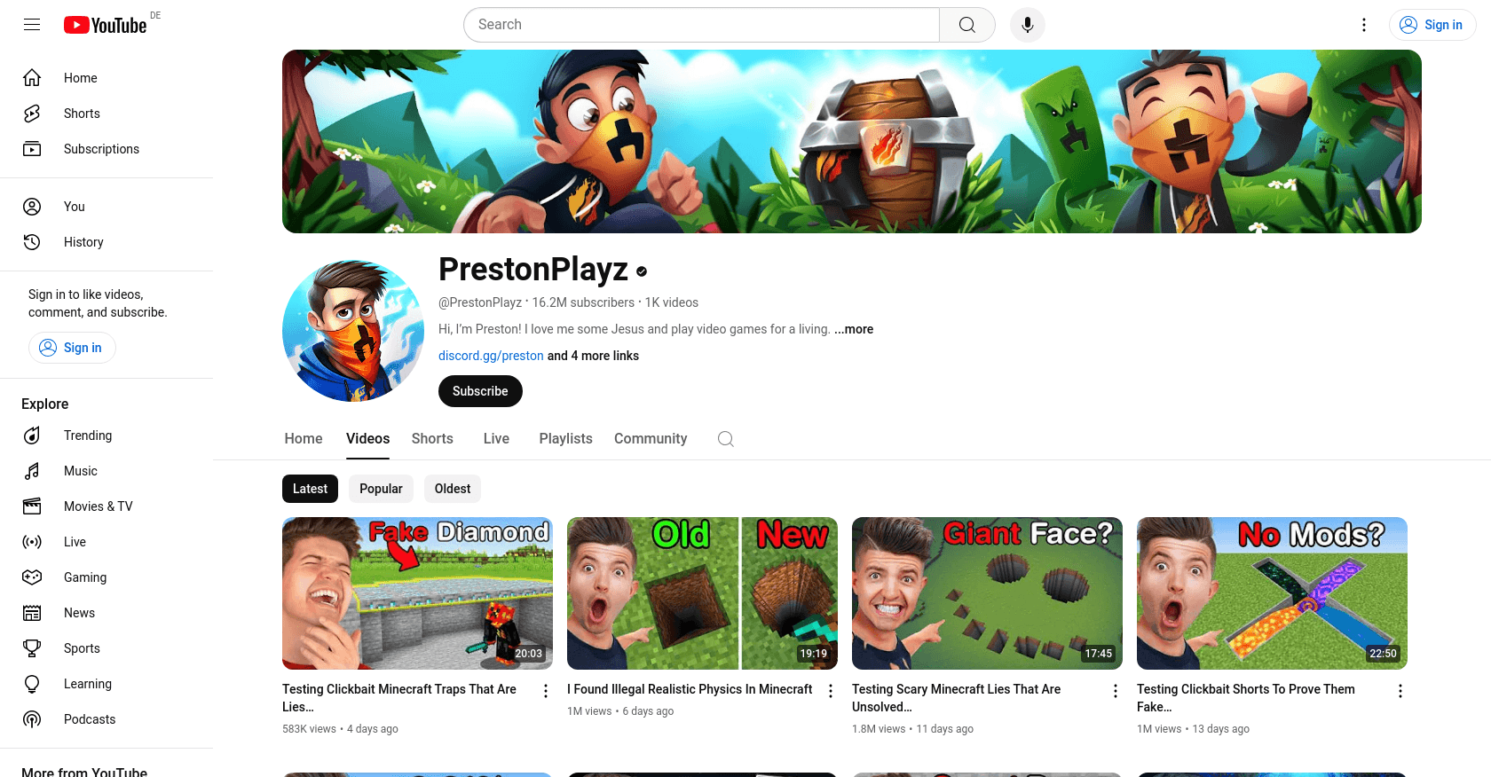 Preston Arsement, known online as PrestonPlayz, is a popular YouTube content creator who joined the platform on March 13, 2018. He has amassed a significant following with over 16.2 million subscribers and 6.89 billion total video views. You can explore more about his channel on PrestonPlayz's YouTube.