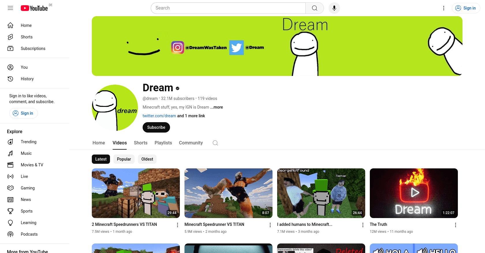 Dream, whose real name is Clay, is a prominent YouTube creator known for his engaging Minecraft content. He launched his YouTube channel on February 08, 2014, and has since amassed over 32 million subscribers. You can explore more about his channel on Dream's YouTube.