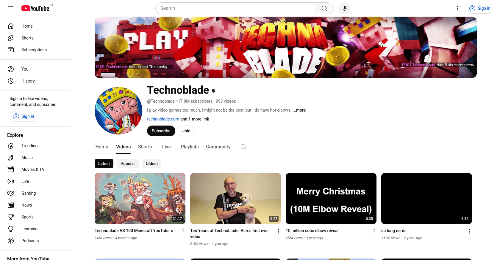 Technoblade, whose real name was Alex, was a renowned YouTube content creator known for his engaging Minecraft videos. He joined YouTube on October 28, 2013, and quickly gained a massive following, amassing 18 million subscribers. You can explore more about his channel on Technoblade's YouTube.