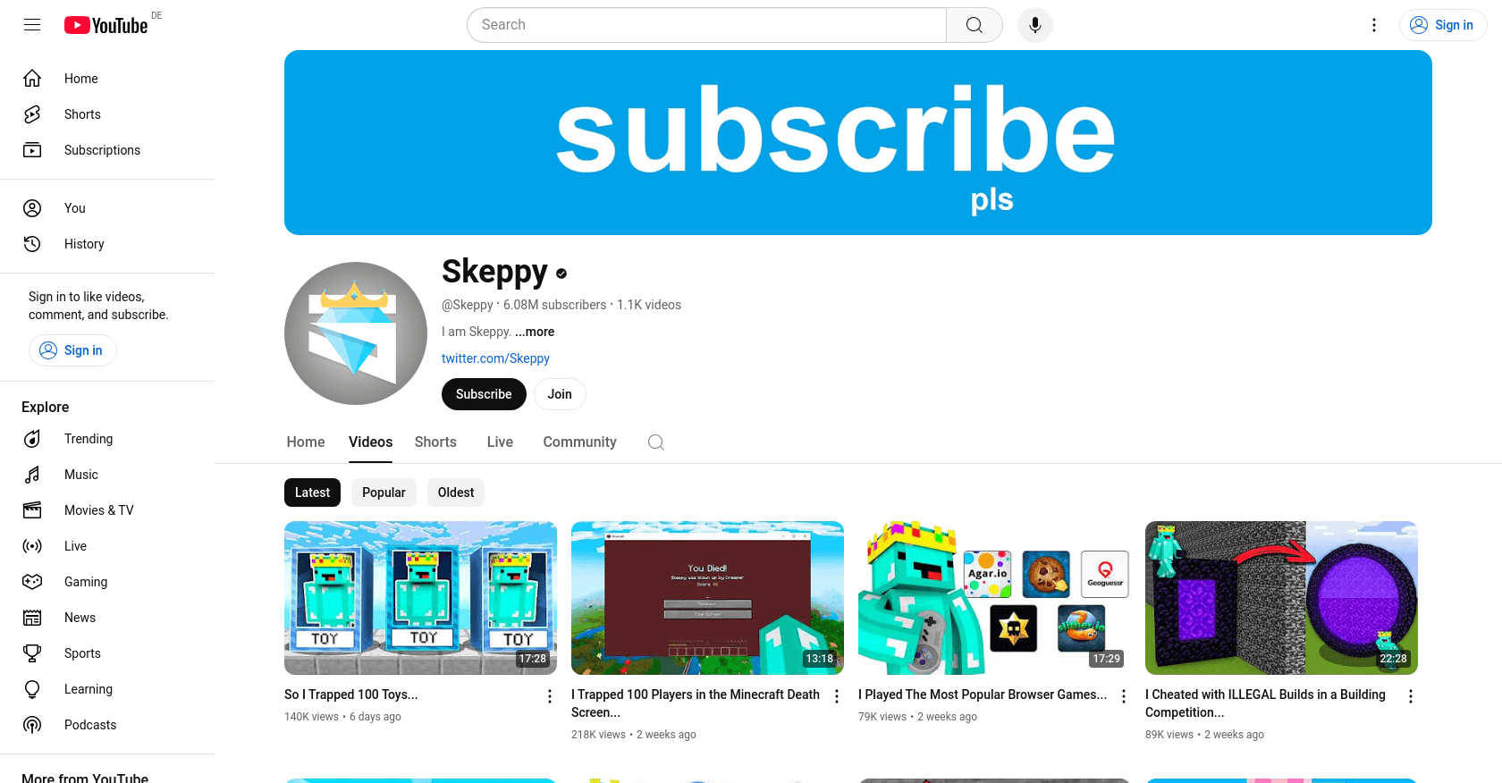 Skeppy creates a variety of engaging content on his YouTube channel, primarily focused on Minecraft. Here are some key types of content he produces: