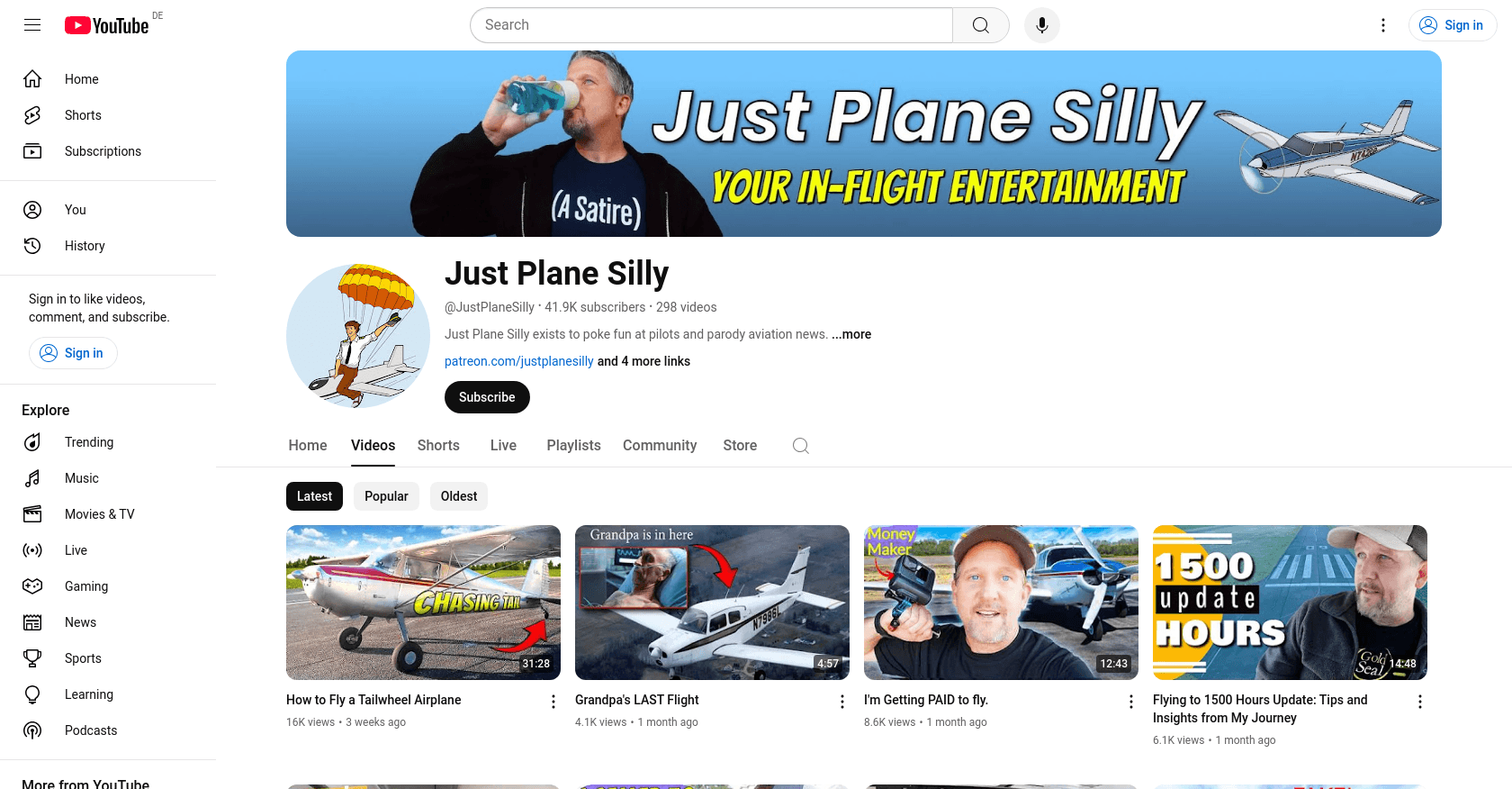 Just Plane Silly, a YouTube channel dedicated to aviation humor and parodies, joined the platform on March 21, 2013. The channel focuses on poking fun at pilots and parodying aviation news, offering a light-hearted take on the aviation industry. You can explore more of their content on Just Plane Silly's Profile.