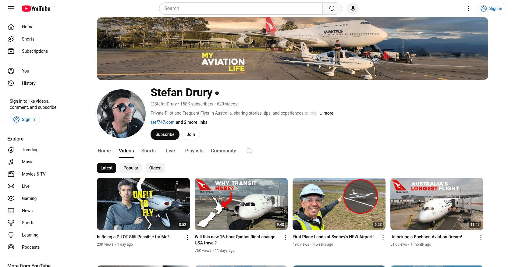 Stefan Drury, a private pilot and frequent flyer, joined YouTube on April 3, 2016. Known for his engaging content on aviation, travel, and pilot experiences, Stefan shares stories and tips to inspire viewers to embark on their own adventures. You can explore more of his content on Stefan Drury's YouTube Profile.