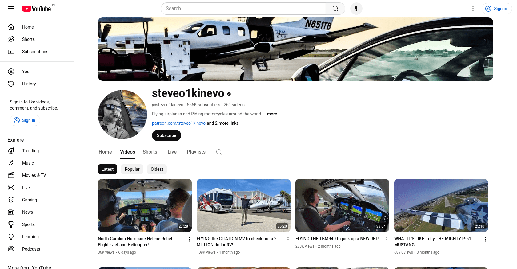 Steveo1kinevo, a professional pilot and aviation YouTuber, joined YouTube on October 30, 2006. Known for his engaging content that includes flight vlogs and motorcycle riding videos, he has amassed over 550,000 subscribers. You can explore more of his content on Steveo1kinevo's YouTube Channel.