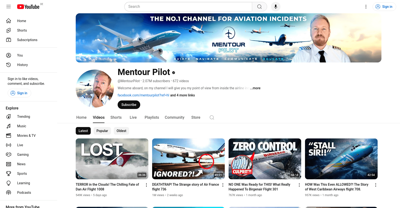Mentour Pilot's YouTube channel boasts impressive statistics that highlight its popularity and engagement within the aviation community.