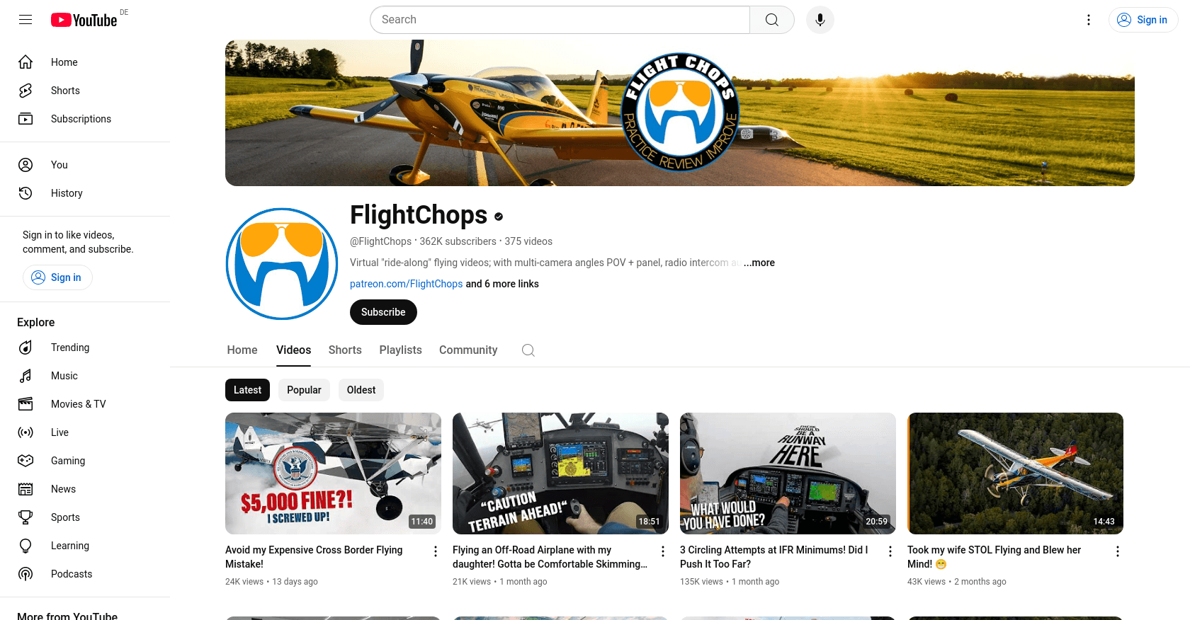 FlightChops, a YouTube channel created by a private pilot, joined the platform on June 11, 2013. The channel offers virtual "ride-along" flying videos with multiple camera angles, POV, panel views, and radio intercom audio, aiming to share the creator's experiences and improve as a pilot. You can explore more of his content on FlightChops' YouTube Channel.