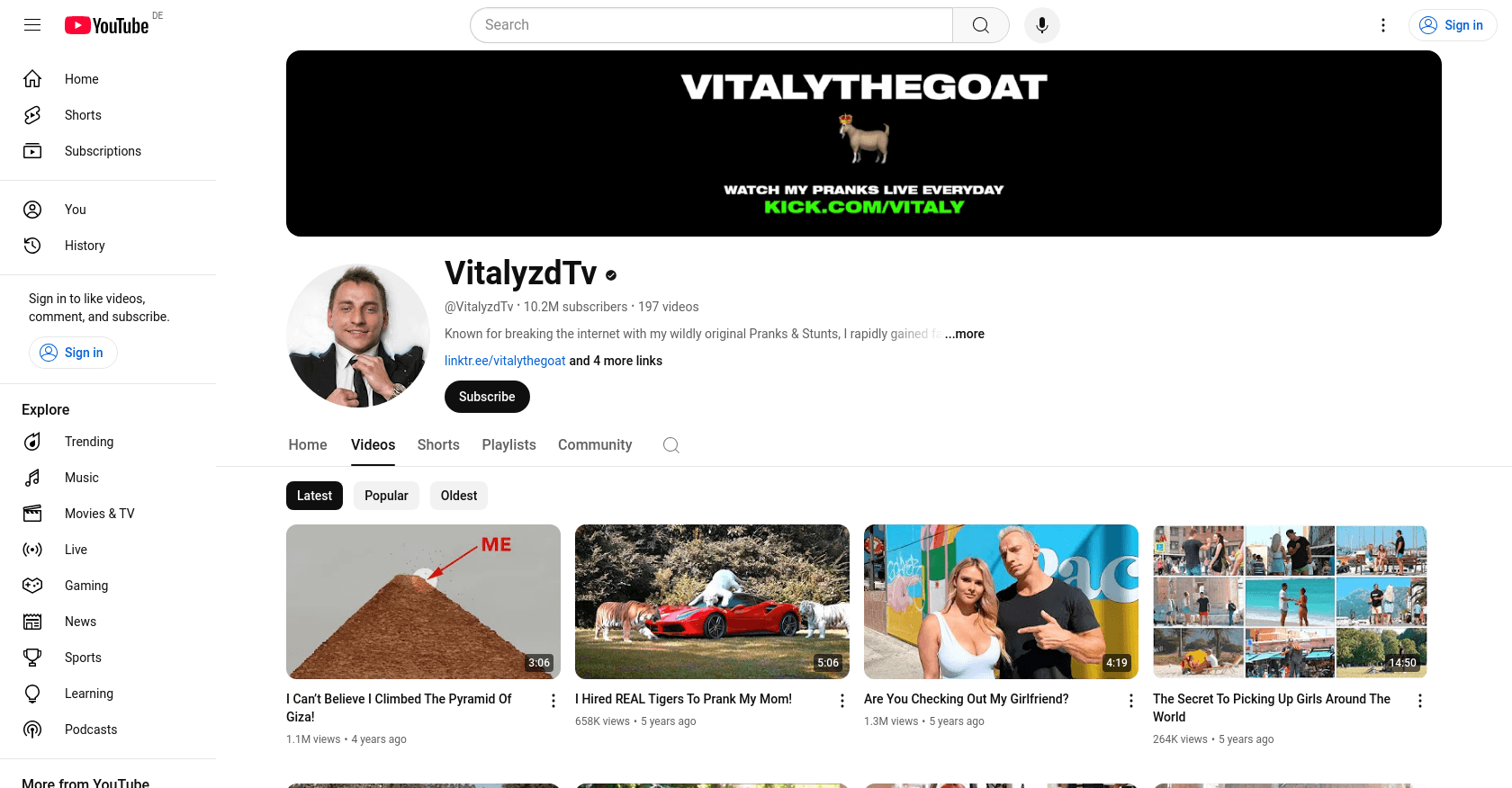 Vitaly Zdorovetskiy, known by his internet identity "VitalyzdTV," is a prominent YouTube star famous for his audacious prank videos. He joined YouTube on August 7, 2011, and has since amassed a significant following. You can explore more of his content on his YouTube channel.