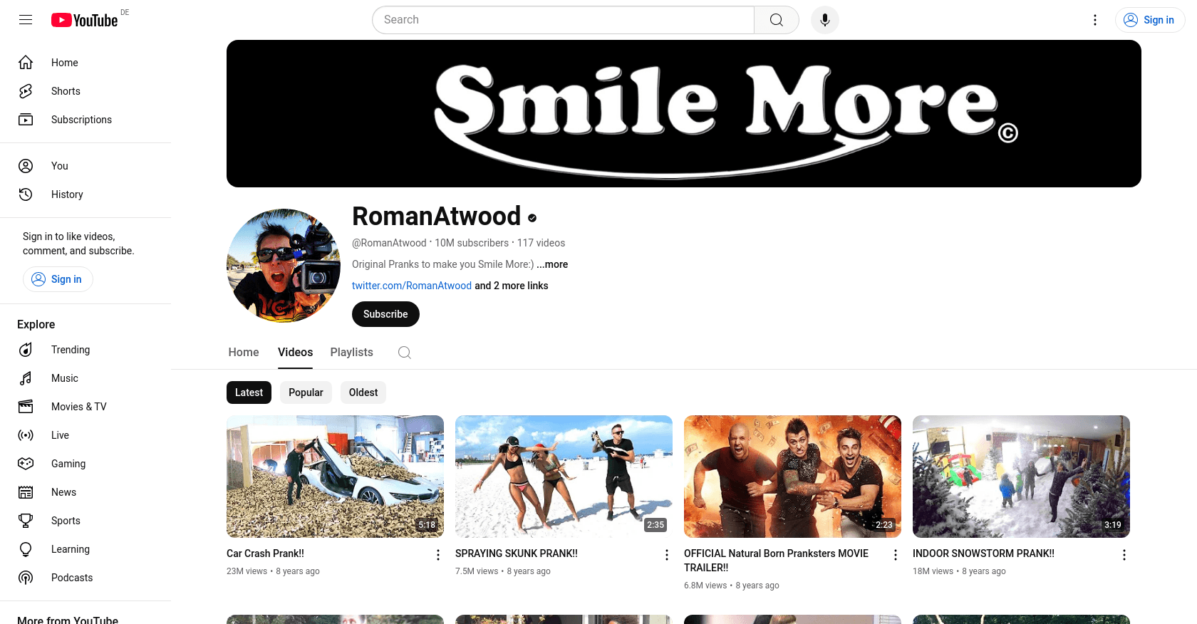 Roman Atwood, born on May 28, 1983, is a renowned YouTube prankster known for his public and hidden camera pranks. He joined YouTube on November 18, 2009, and has since amassed over 10 million subscribers on his channel. You can explore more of his content on his YouTube channel.