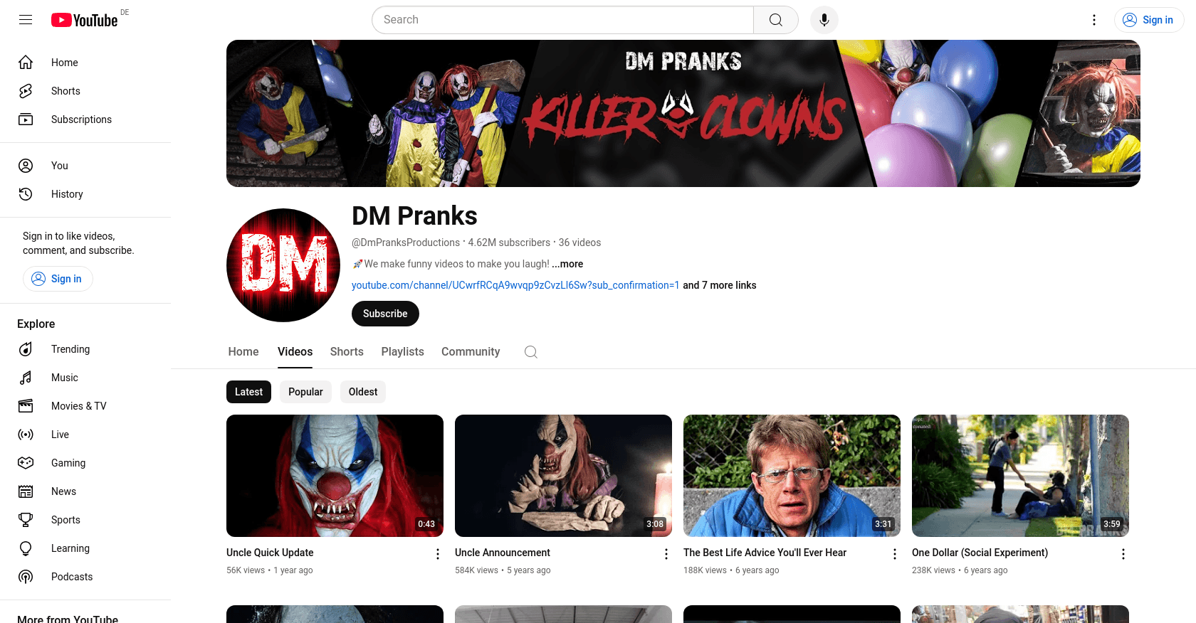 DM Pranks' audience primarily consists of younger viewers, particularly teenagers and young adults, who are drawn to their elaborate scare pranks and social experiments. For instance, their "Devil's Daughter HORROR Short Film" has garnered 38 million views, and the "Killer Clown" series has captivated millions, highlighting the type of content that resonates with this demographic.