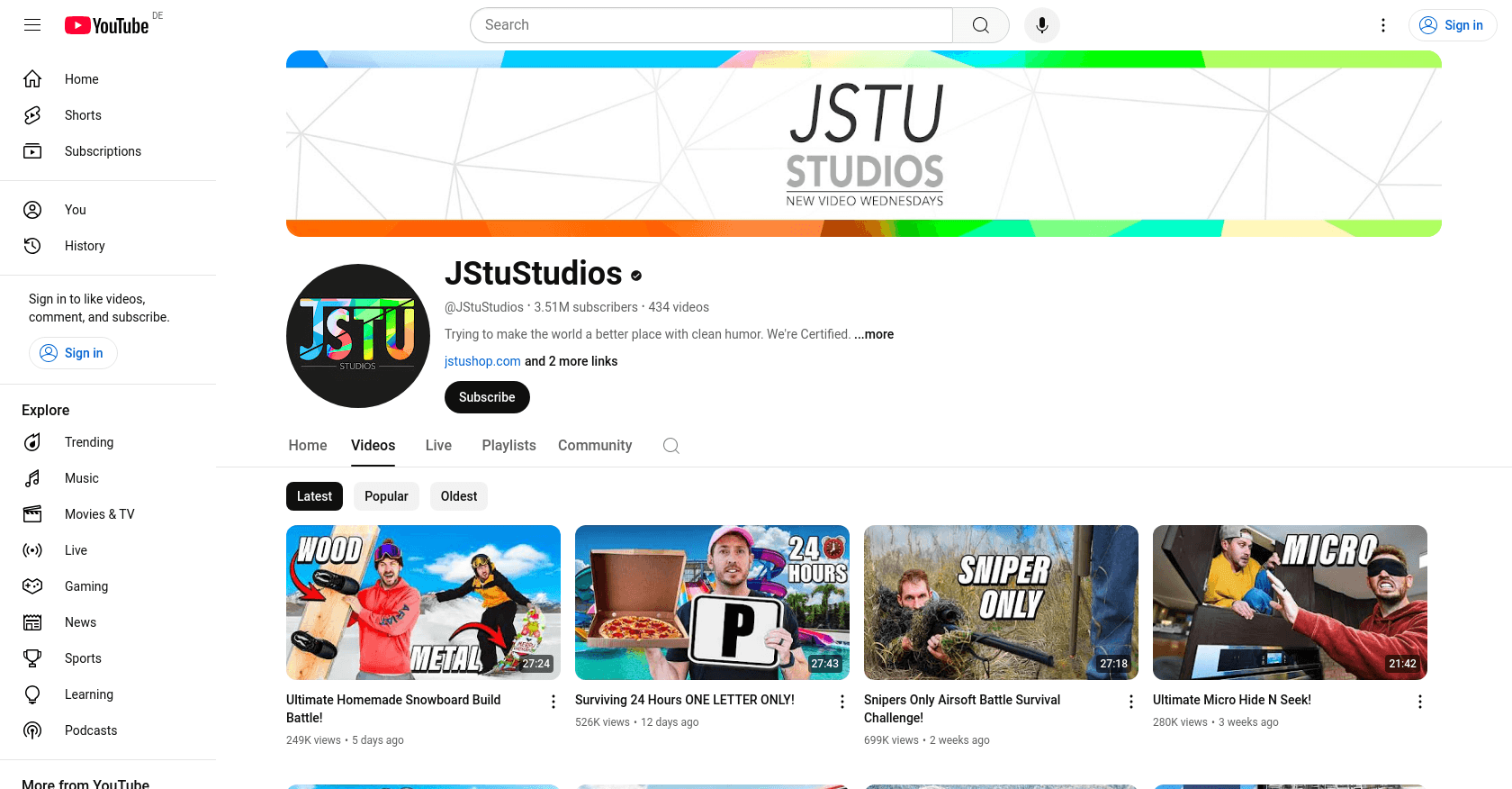 JStuStudios is a popular YouTube channel known for its clean humor and entertaining challenges.