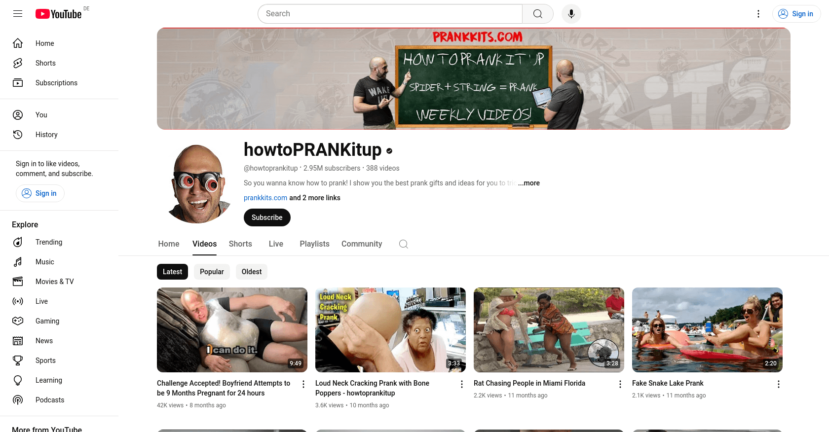 Dennis Roady, known online as HowToPrankItUp, is based in Cincinnati, Ohio, United States.