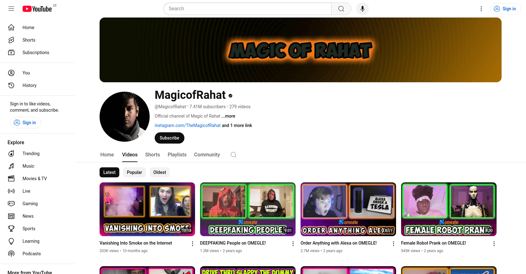 Magic of Rahat's YouTube channel showcases impressive statistics that highlight his influence in the entertainment category.