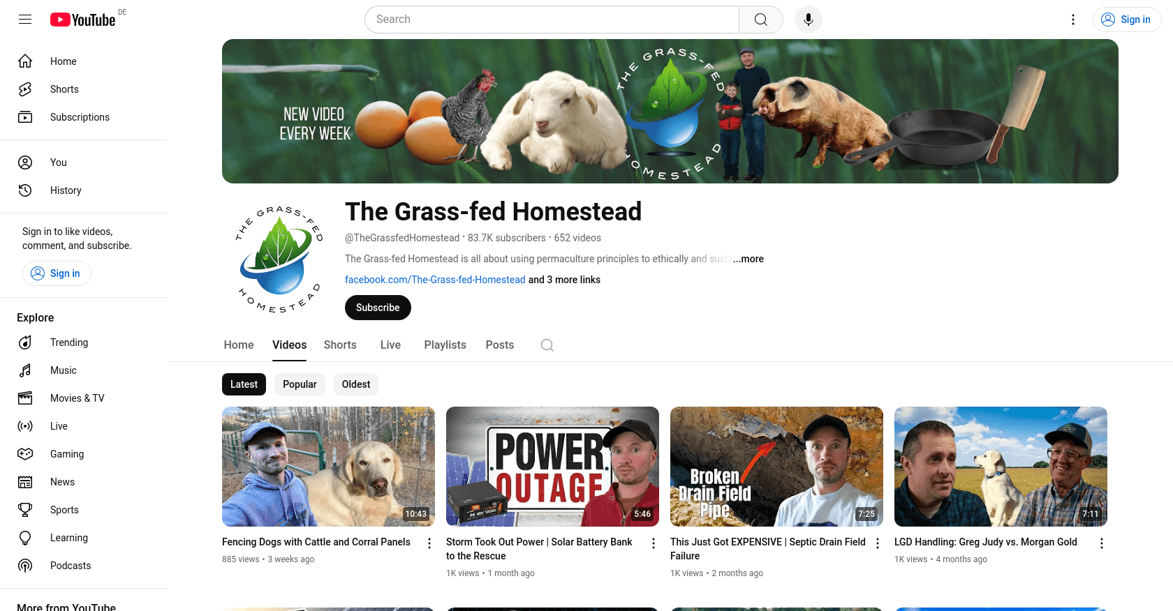 The Grass-fed Homestead, run by YouTuber Josh, joined YouTube on June 22, 2016. The channel focuses on using permaculture principles to ethically and sustainably raise plants and animals, providing the family with healthy, nutrient-dense sustenance while regenerating the landscape. For more information, visit the The Grass-fed Homestead YouTube Channel.