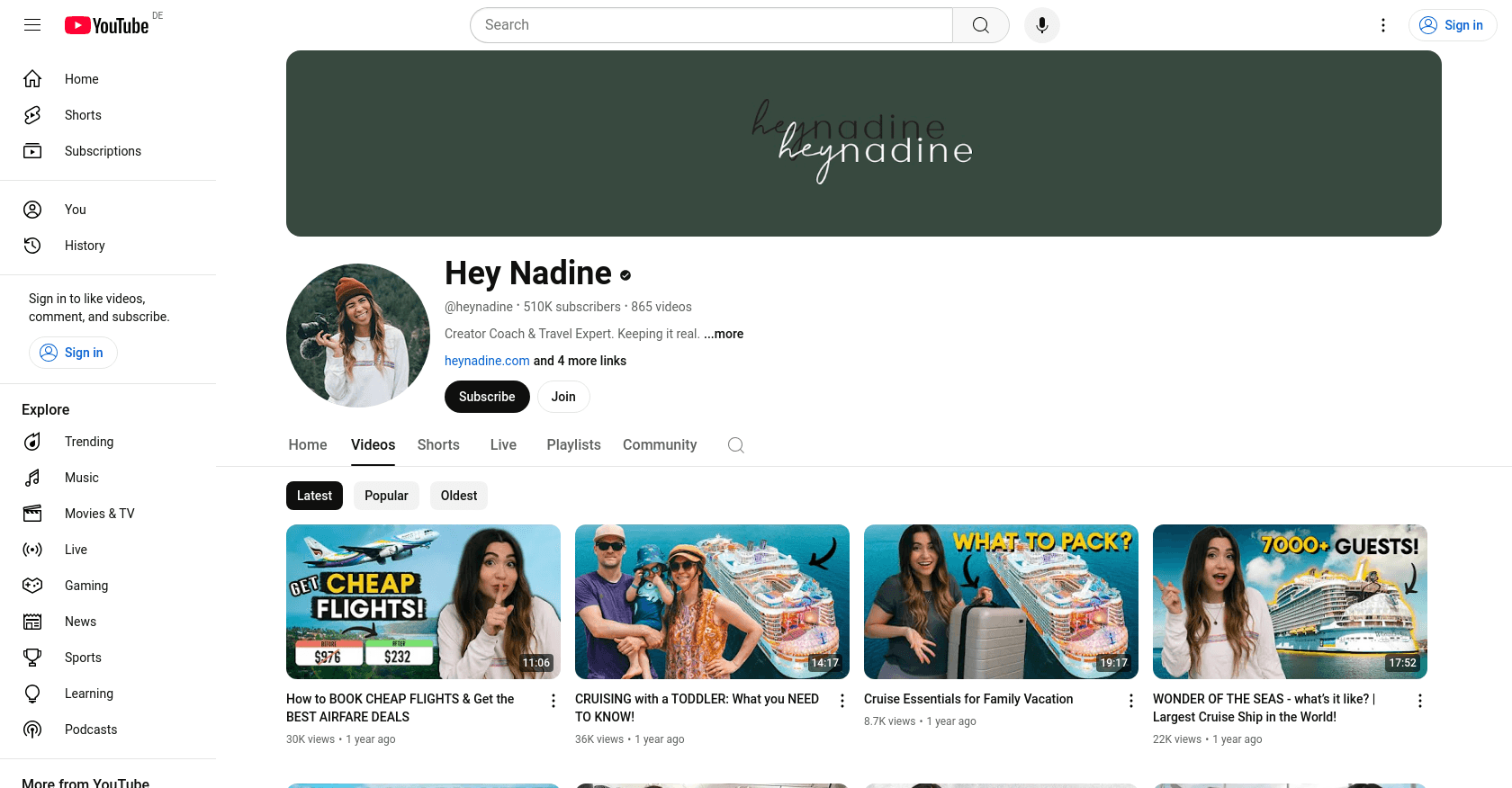 Hey Nadine's YouTube channel offers a wealth of travel advice and adventures for both seasoned travelers and beginners.