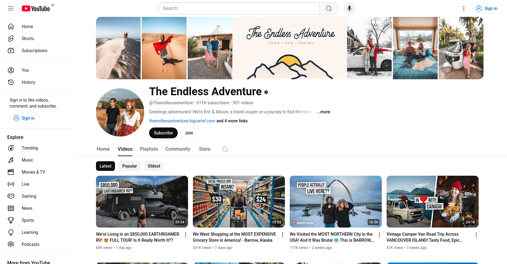 The Endless Adventure, run by Eric and Allison, is a travel-focused YouTube channel that joined the platform on October 22, 2015. They share their journey as a travel couple exploring interesting places and unique foods around the world. You can follow their adventures on their YouTube channel.