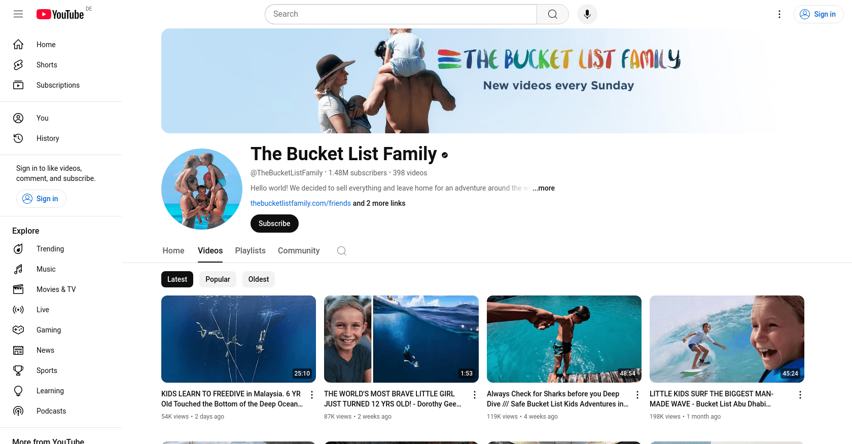 The Bucket List Family's YouTube channel showcases impressive statistics that highlight their influence in the travel niche.