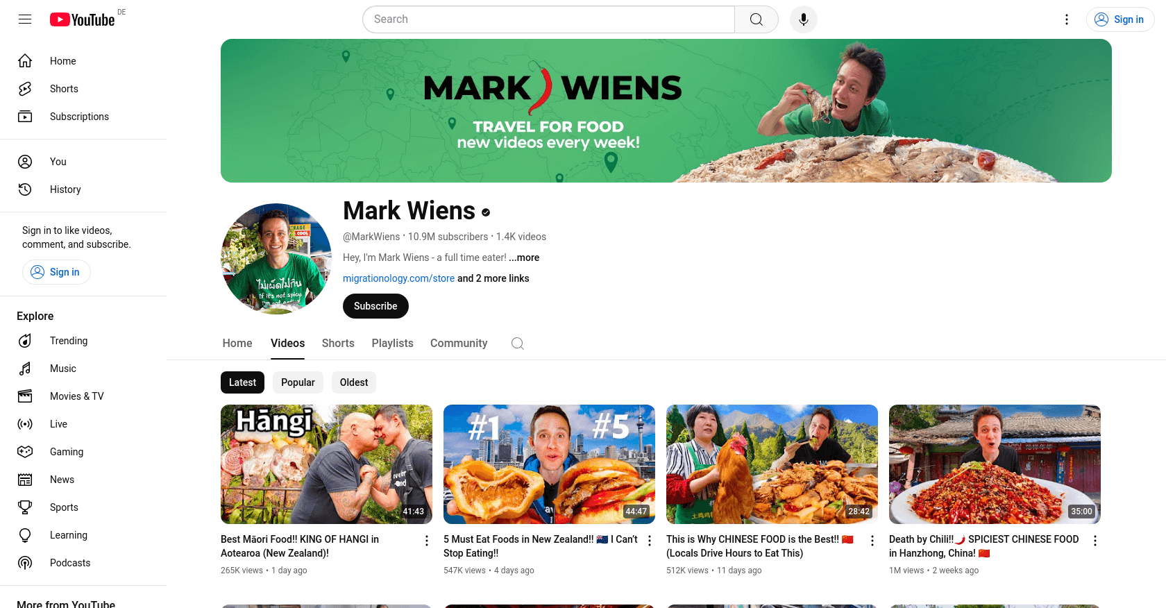 Mark Wiens' YouTube channel boasts impressive statistics that highlight his influence and reach in the food and travel niche.